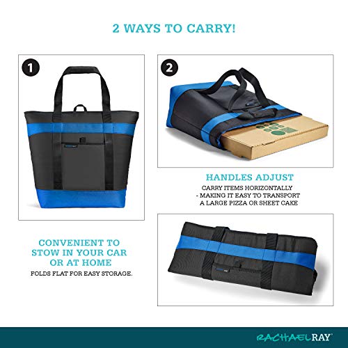 Rachael Ray Jumbo Chillout Thermal Tote, Foldable Insulated & Reusable Food Bag for Groceries, Potlucks, Sundries & More